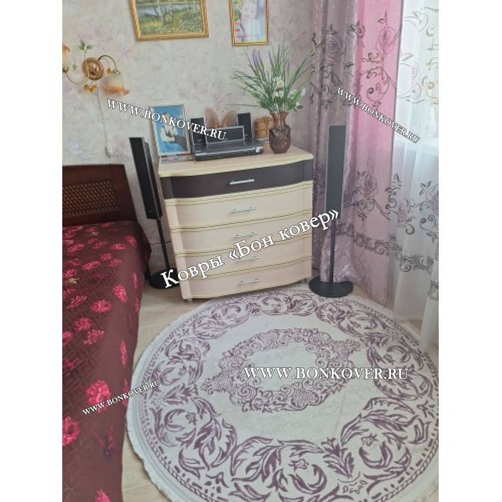 Изящный Ковер Турция Для Гостиной Дизайн 94 Сиреневый Круг наполняет интерьер вашего дома теплом и уютом, гармонично сочетает в себе изящество и красоту. Он выполнен из высококачественного сырья, комфортный и долговечный.