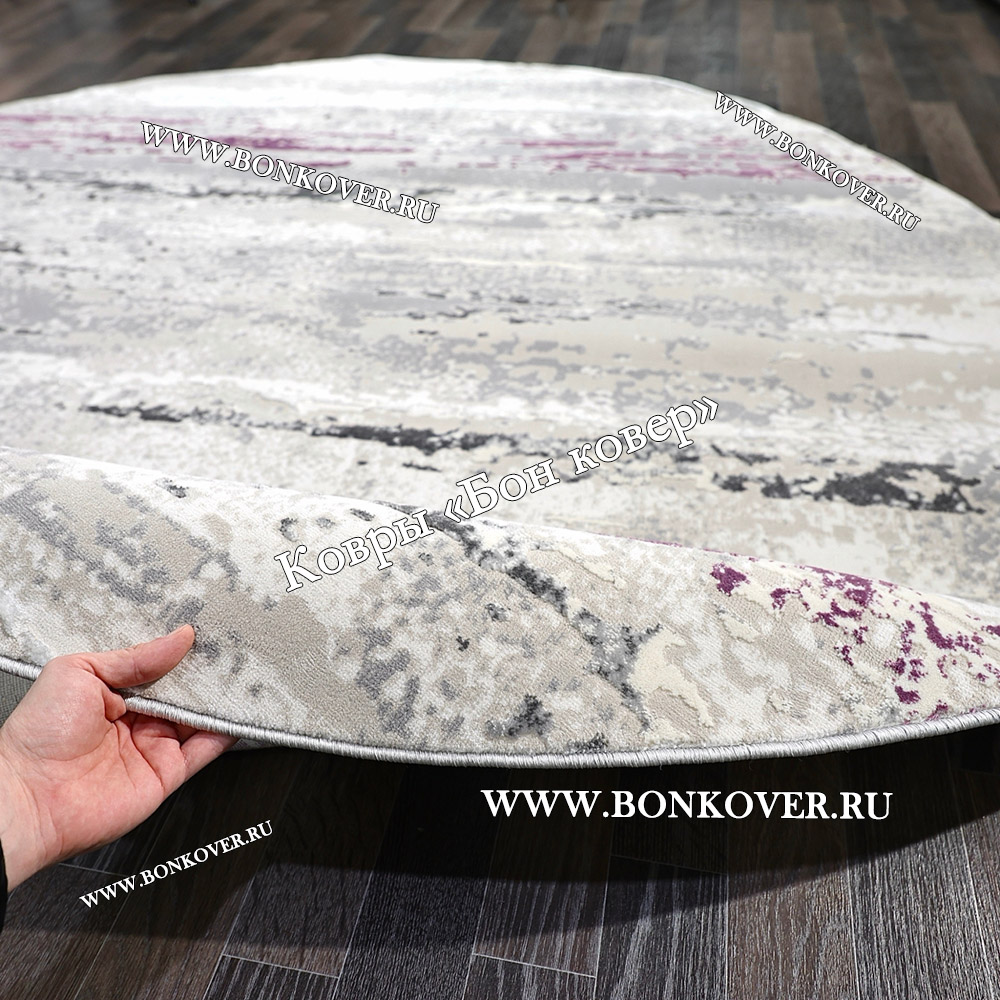 Круглый Ковер Для Гостиной Сиреневый С Серым Дизайн 30451 станет идеальным дополнением интерьера, оформленного в современном или классическом стиле. Мягкое, но прочное, ковровое покрытие обеспечивает тепло- и шумоизоляцию, отличается длительным сроком эксплуатации, пожаробезопасностью, экологичностью и высокой износостойкостью, является отличным барьером от повышенной влажности в помещении и утеплителем для холодного пола. Благодаря качеству материалов, ковер не деформируется, сохраняет первоначальный вид под тяжестью предметов мебели. За его поверхностью легко ухаживать.